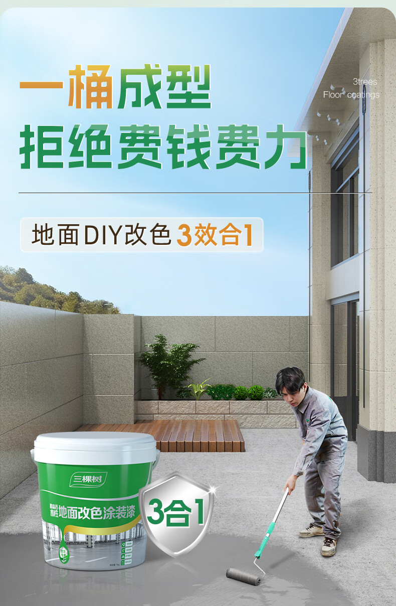 三棵树漆(SKSHU)水性环氧地坪漆 耐磨车间水泥地面漆室内外家用地板改造油漆 标准绿(哑光)-1kg
