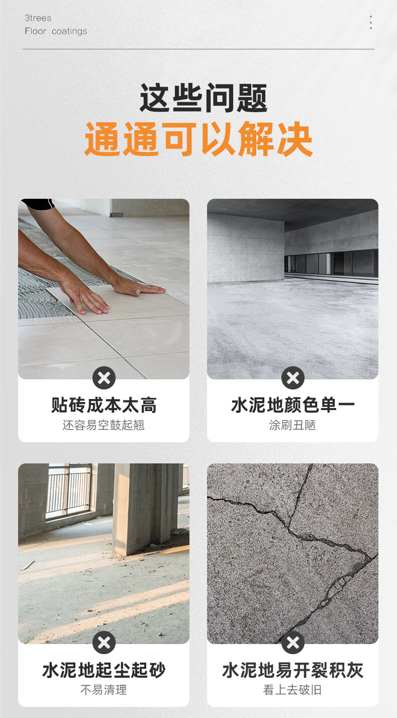 槃古环氧树脂地坪漆室内家用环保无味水泥地面漆耐磨防滑地板漆油漆 2斤 浅灰色