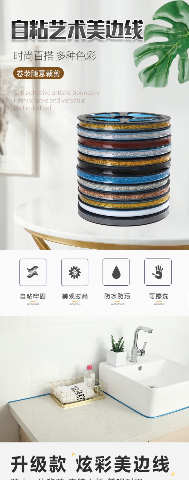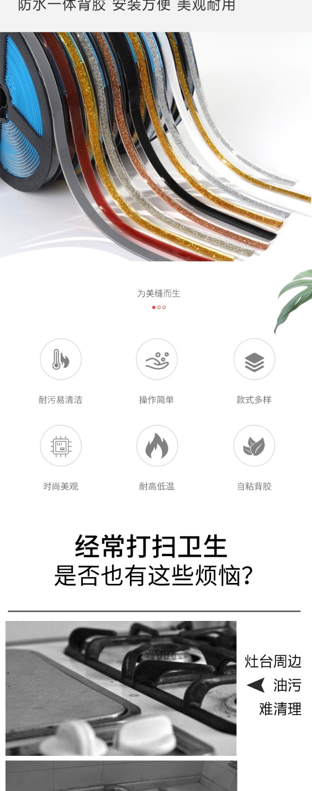 胶码氏 美边线自粘 美缝贴条加宽厨房防水防霉胶带石膏装饰自粘美缝贴水池灶台缝隙贴装饰艺术美边线密封条 贵族银