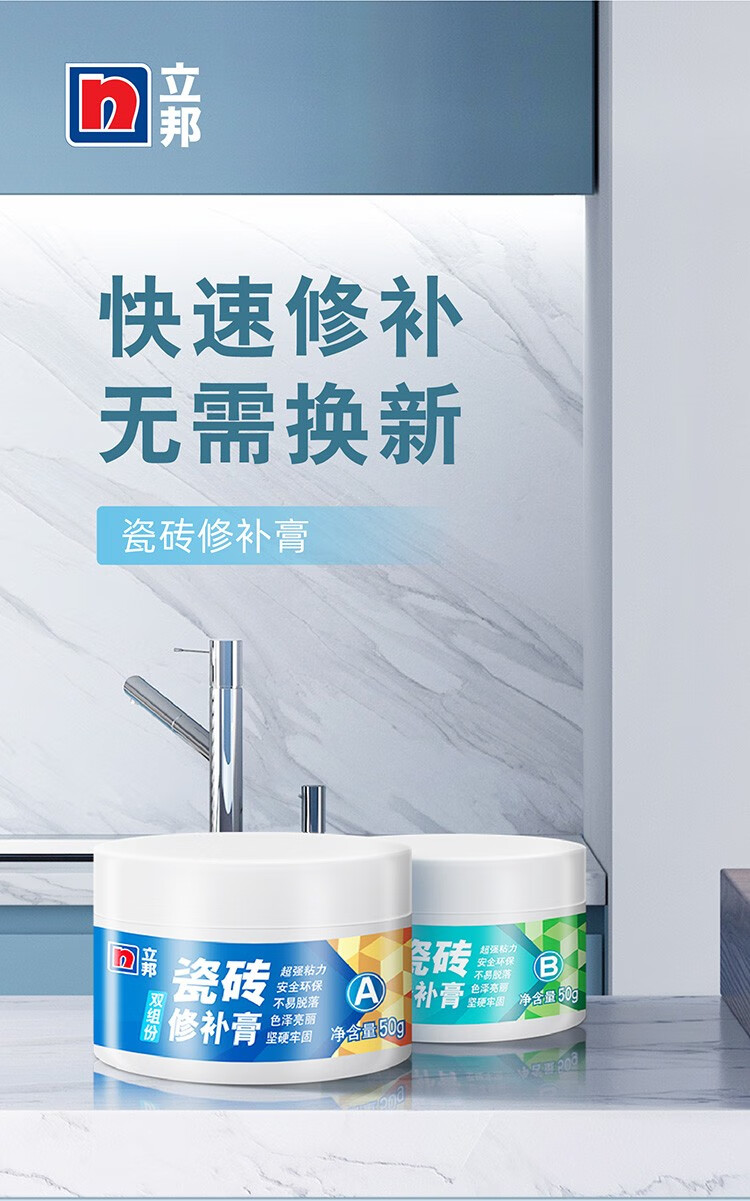 立邦 瓷砖修补膏地砖陶瓷膏小坑裂缝瓷砖釉面浴缸洗手盆马桶粘胶修复 瓷白100G(A+B) 组