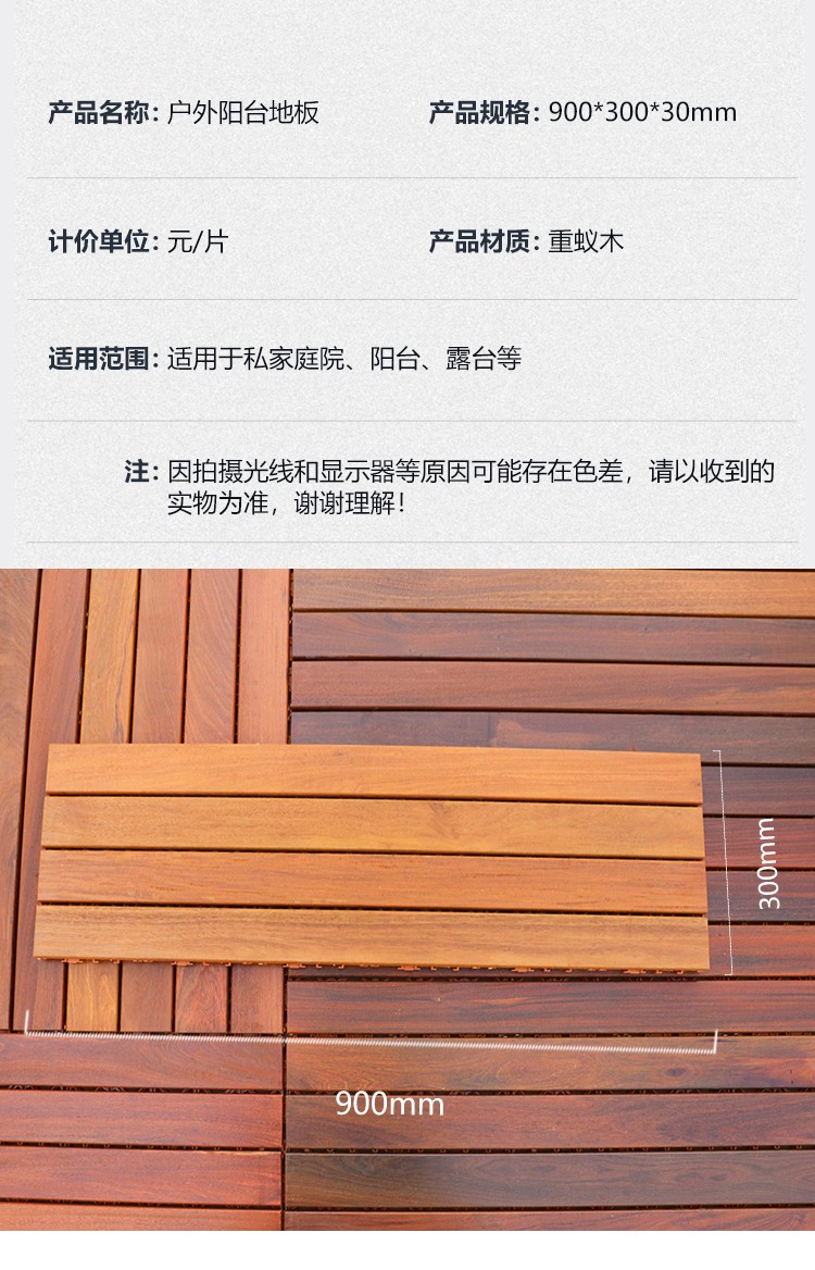 ANGEL DECK户外阳台重蚁木快拼地板庭院露台阳光房实木拼接防腐木地板防虫蛀 90*30*3cm